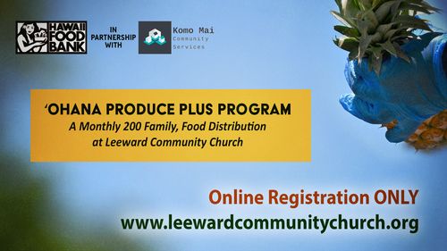 Komo Mai Community Services is partnering with the Hawaii Foodbank to provide a monthly food distribution for 200 families at Leeward Community Church. If you would like information on other 'Ohana Produce Plus locations, or other services the foodbank can provide use the link below.